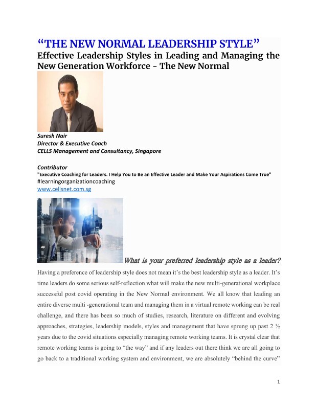 Effective Leadership Style In Leading and Managing The New Generation Workforce - The New Normal